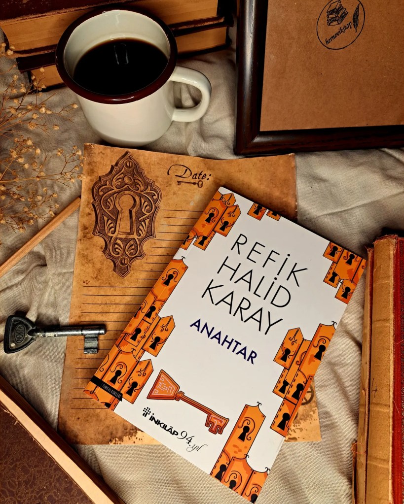 1940’ ların başındaki İstanbul’un Taksim,Şişli,Bomonti,Beyoğlu hayatının adeta fotoğrafını çeken Anahtar romanı,yanlış anlaşılma,şüphe,yeni hayat konularını kâh macera kâh mizahla anlatır.