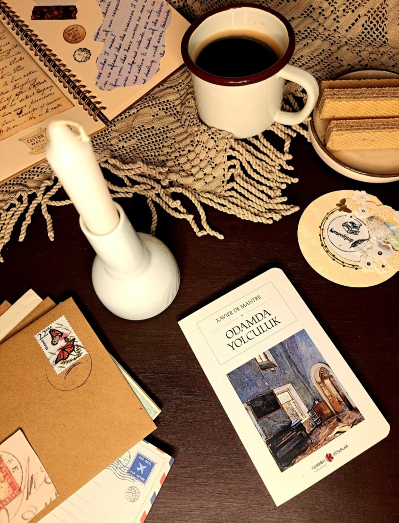 Yerinde kalarak, bir odadan çıkmadan yolculuk yapmak mümkün mü? Evet. Yazar tam olarak odasında bir yolculuğa çıkıyor ve biz okurları da şu cümleleriyle bu yolculuğa davet ediyor: “Beni takip edin.Aşkın küçük düşürüldüğü, dostluğun ihmal edildiği bir yerde, insanların gaddarlığından ve vefasızlığından uzakta kalmak isteyen sizler; kainatın bütün mutsuzları ,hastaları, bıkkınları beni izleyin .”